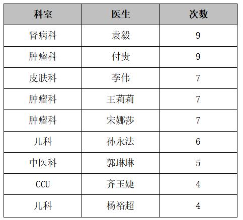 医生表扬排行榜