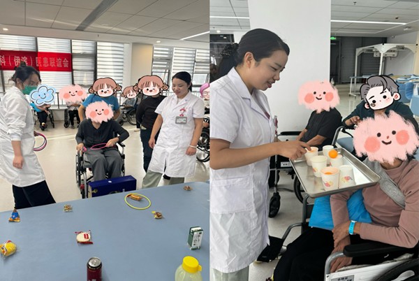 游戏环节将康复训练融入欢乐时光。吹乒乓球游戏既是趣味竞技,更是针对性的康复锻炼,在轻松比拼中悄悄提升肺活量与吞咽功能,优胜者还能收获精美礼品;经典套圈游戏惊喜登场,琳琅满目的小礼物静待认领,站在指定线外投掷的每一个套圈,都藏着收获的喜悦与互动的温情。不拼名次重参与,让欢笑成为最好的“康复剂”。