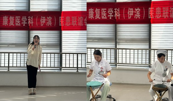 才艺展演为活动注入温暖力量。护士马玉娟带来歌曲《小美满》,美妙旋律流淌间,为康复之旅添上浪漫注脚;护士长潘丹莹与理疗师易利亚的空灵鼓演奏更显治愈,先以《希望》传递对康复的坚定信念,再以经典曲目《东方红》邀约全场共唱,旋律交织着医患同心的感动,让积极向上的力量在现场传递。